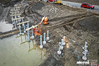 Construction crews are moving ahead on the boardwalk planned for the largest holding pond in the East of Africa project, where rows of concrete pilingsā¦