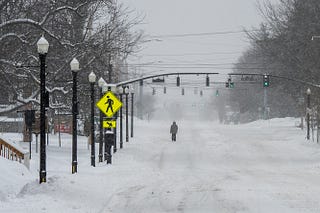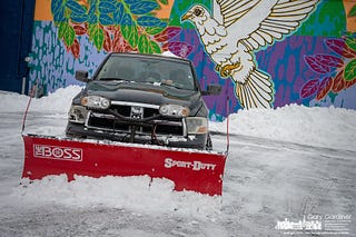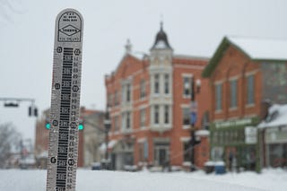Snow Removal Ongoing in Uptown Westerville Following Heavy Snowfall