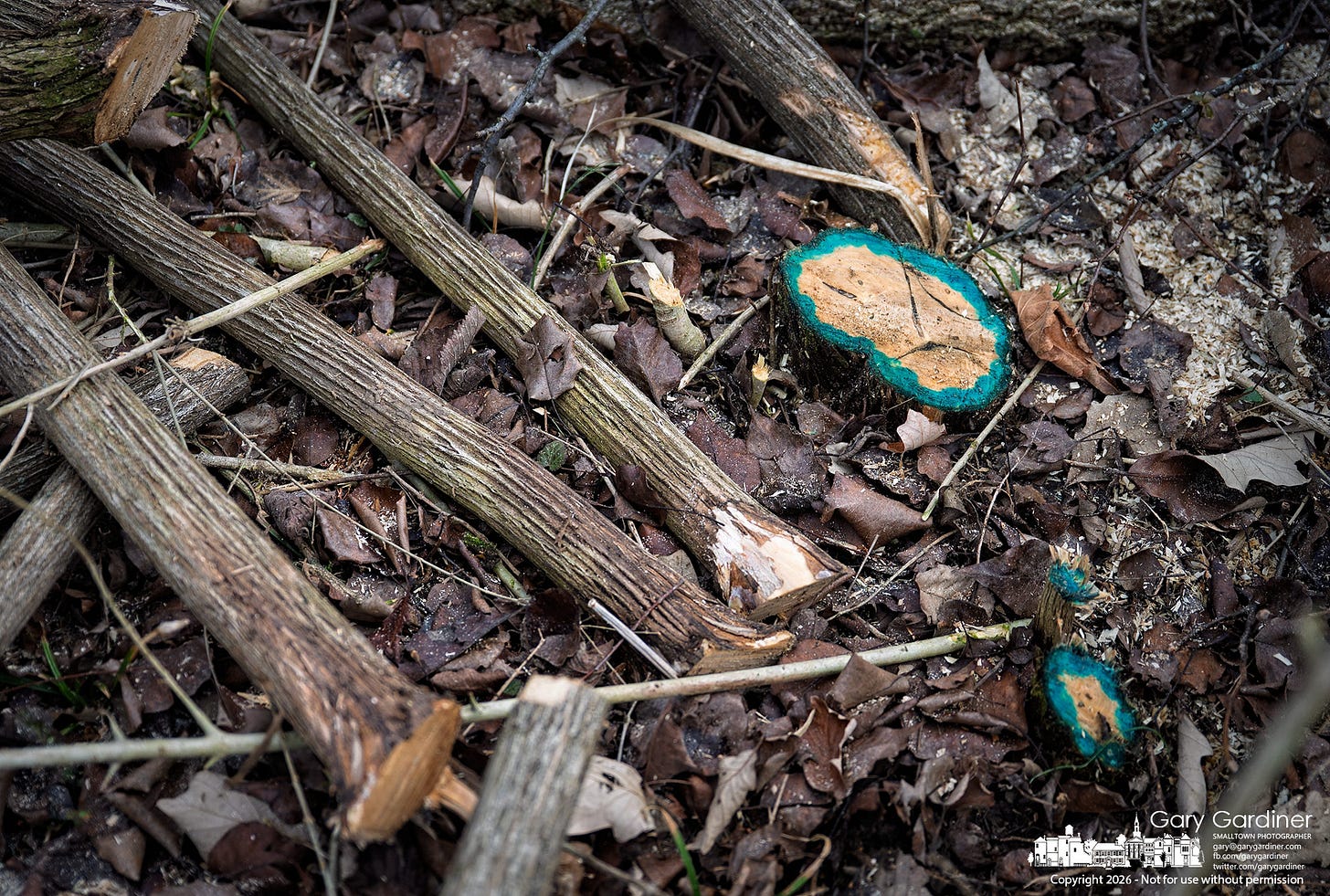 After the trees and shrubs were cut, crews treated the remaining stumps with herbicide to prevent the invasive plants from resprouting. The arborist overseeing the work said some of the downed wood will remain in the wetland to provide habitat for insects and small animals, while most of the material will either be removed from the site or chipped in place.