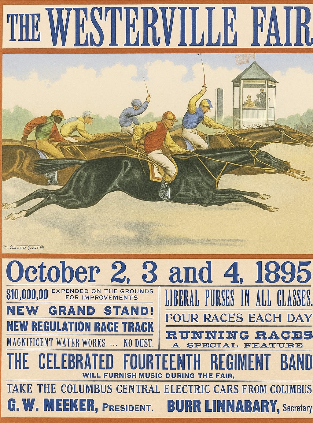 The Westerville Fairgrounds (founded 1871), with its racetrack, livestock shows, and exhibition halls.