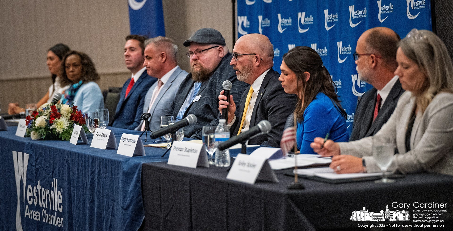Westerville City Council candidates answered questions Thursday night at a public forum sponsored by the Westerville Area Chamber of Commerce at the Renaissance Hotel.