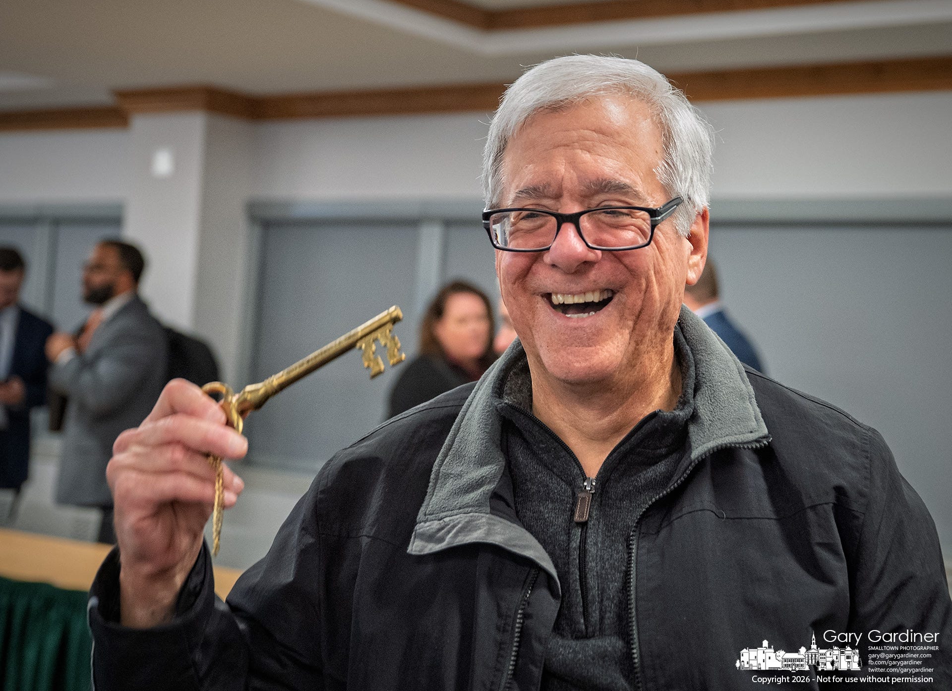 In presenting the key, Council Chair Czako said, “This was actually found during the move of City Hall. This is actually a one of a kind. We do not know where it came from or how old it is, but it might be as old as you. So this seems pretty fitting that you would have this very special item.”