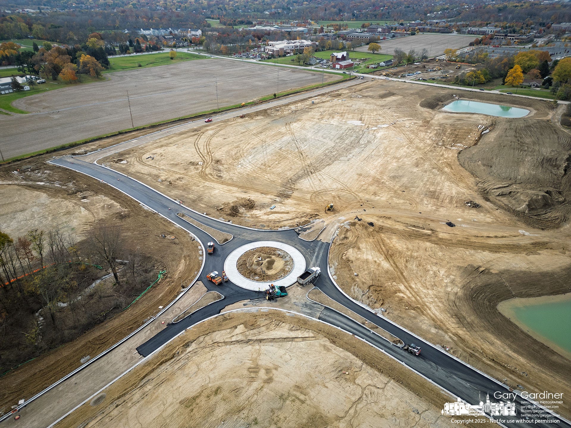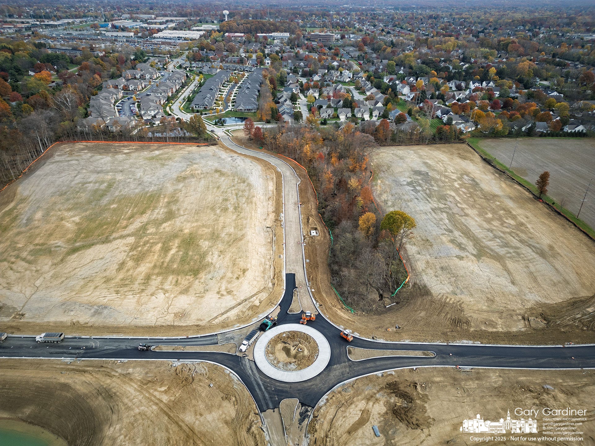 Paving began over the weekend along the section of roadway extending from the roundabout that connects Hoff Road to the new road between Africa Road and Polaris Parkway. Most of the paving work was completed on Saturday.