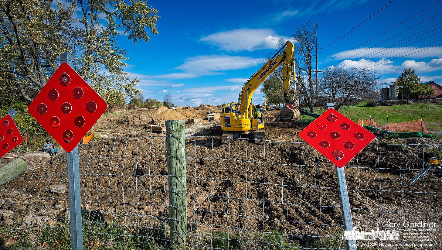 Construction continues on a bridge over Alkyre Run, part of the new road linking Westar Boulevard to Africa Road. Beneath the bridge, crews will install a rectangular concrete culvert that transitions into a round, eight-foot-diameter concrete culvert carrying Alkyre Run beneath a gravel-and-dirt bridge. This older bridge connects the western acres of Yarnell Farm to the farmhouse and barns.