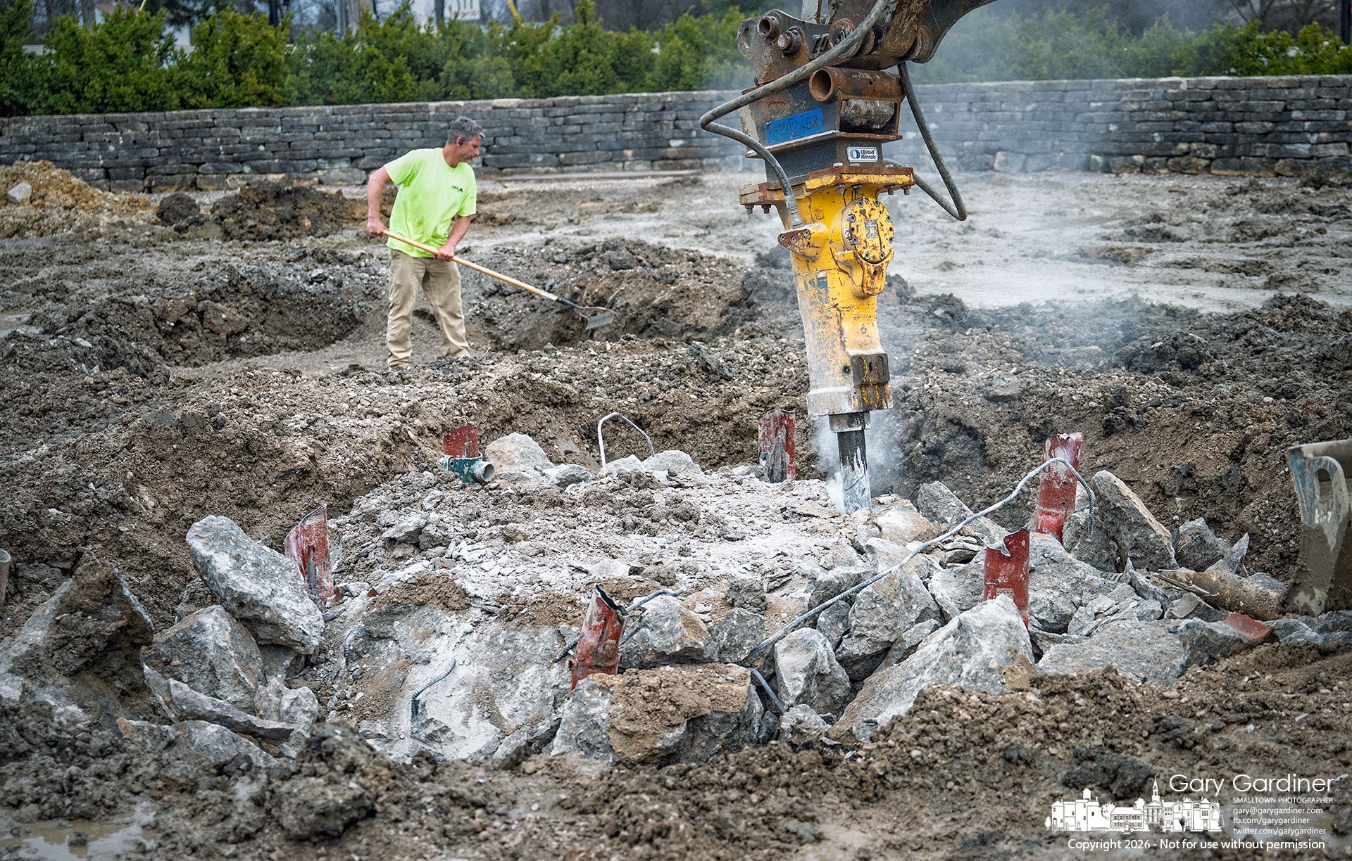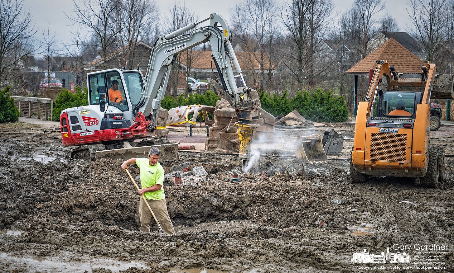 The above-ground parts of the playground at Millstone Creek Park on Maxtown and Spring have been taken out. This week, the contractor is using a jackhammer to break up the underground foundations and pillars for the old playground equipment, preparing the site for new equipment to be installed by August.