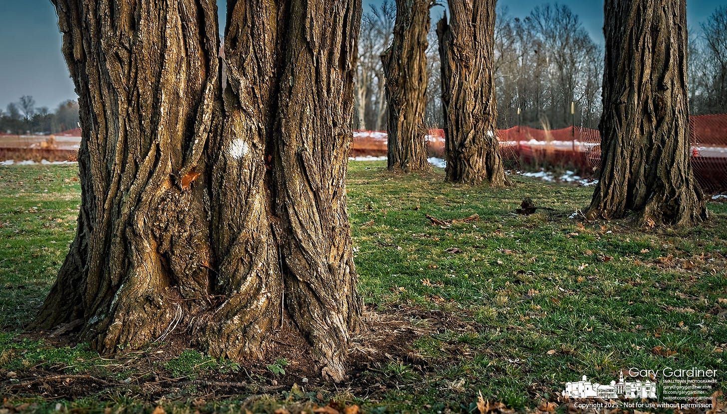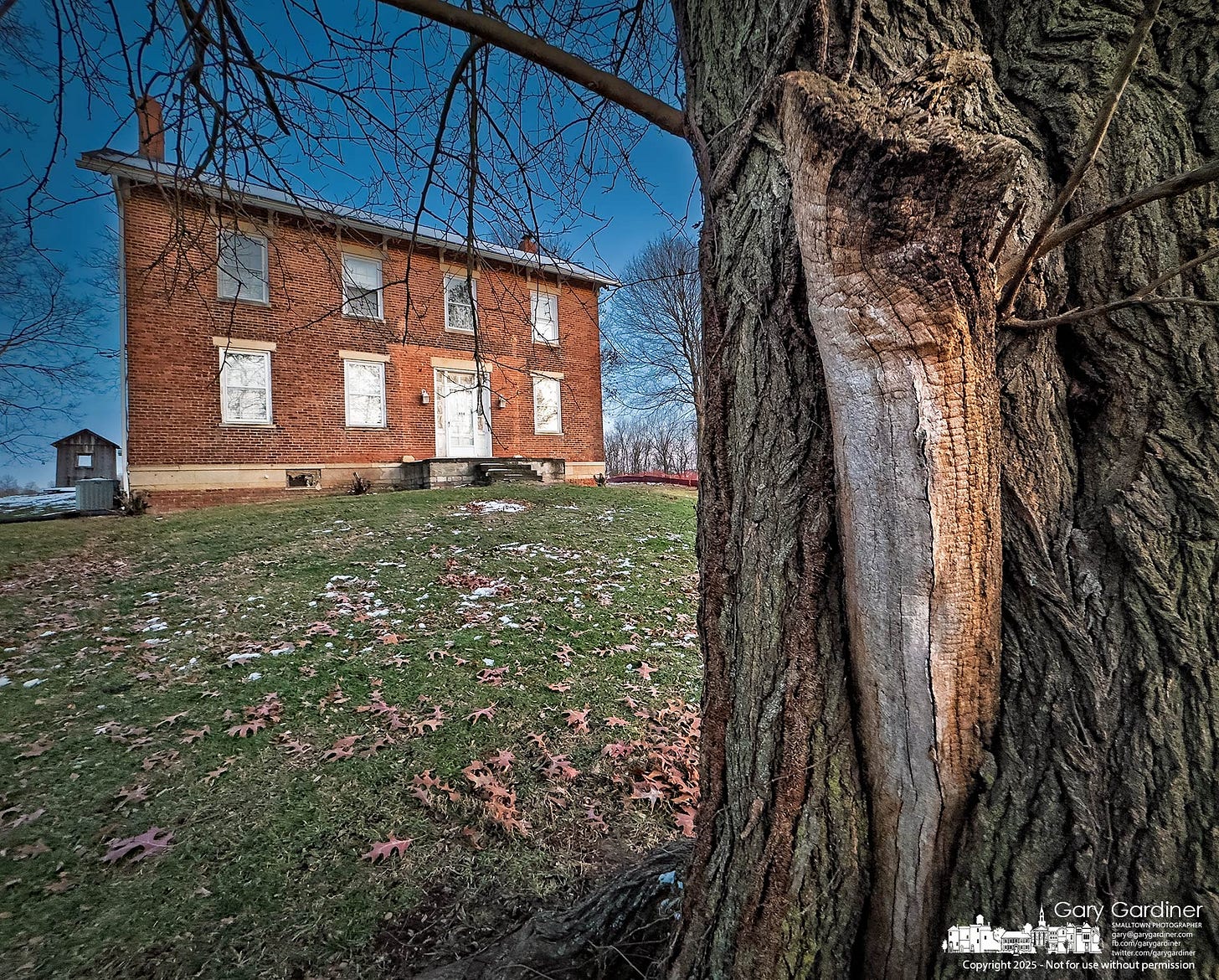 Crews have begun sorting through the stand of black locusts in the backyard of the Sharp House. A few trunks now carry small white paint dots, marks that look like decisions made during a recent walk through the property. The marks indicate trees that are to be removed.