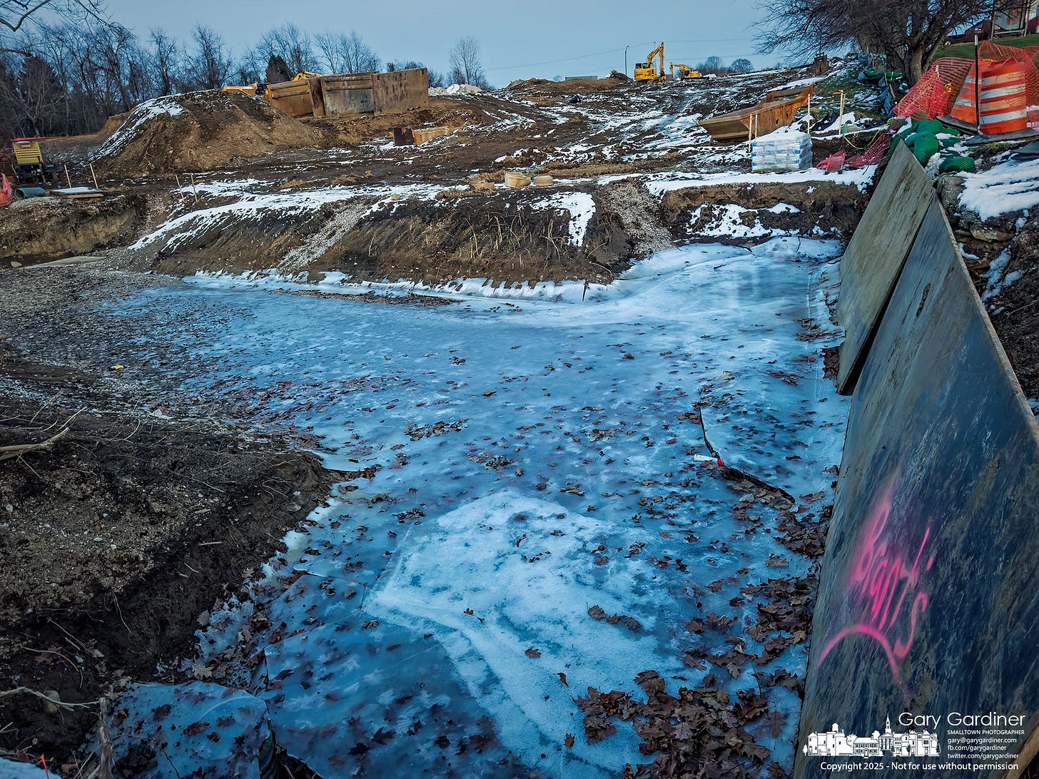 Crews wanted to return to the site this week expecting to resume installation of the eight precast concrete sections and paired headwalls. Instead, the standing groundwater from last week’s flooding had iced over, and the surrounding soil was frozen. Inspectors said the conditions prevent them from safely setting equipment or preparing the base for the culvert.
