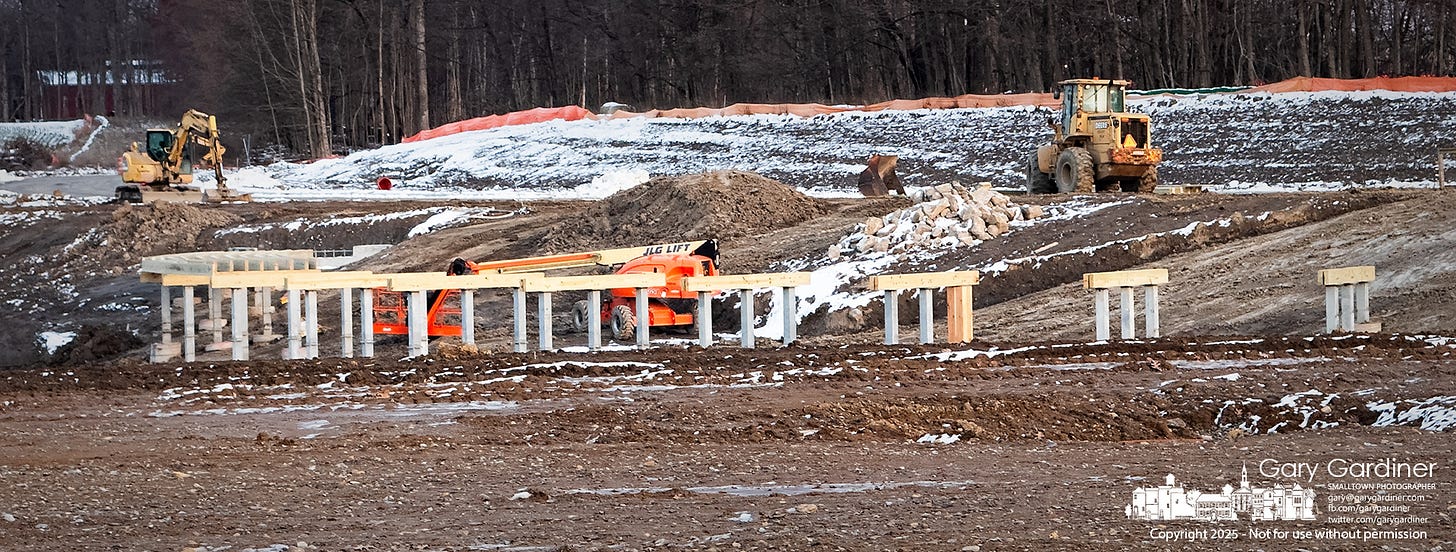 Crews made minor progress on the observation decks and landings on the main holding pond just behind the Sharp House. Warmer weather will see crews continuing to fortify the foundations and mount support beams across piers rising from concrete mounts before beginning deck installation.