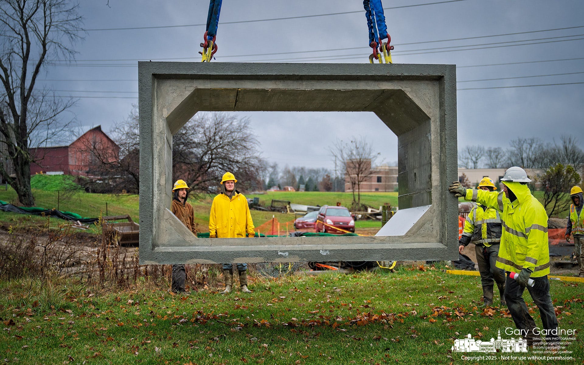 For now, the eight concrete sections and headwalls rest on higher ground, waiting for a dry spell and an opportunity to be installed as intended: piece by piece, sealed tightly, ready to channel the flow beneath the new road.