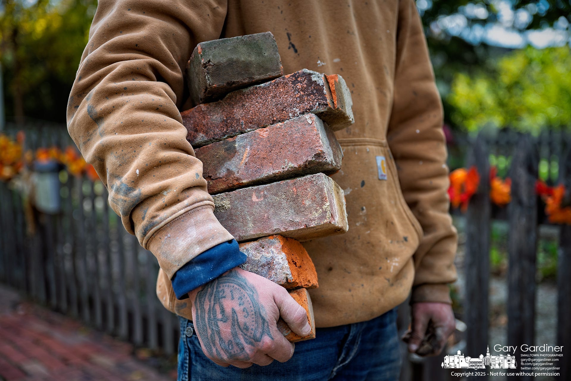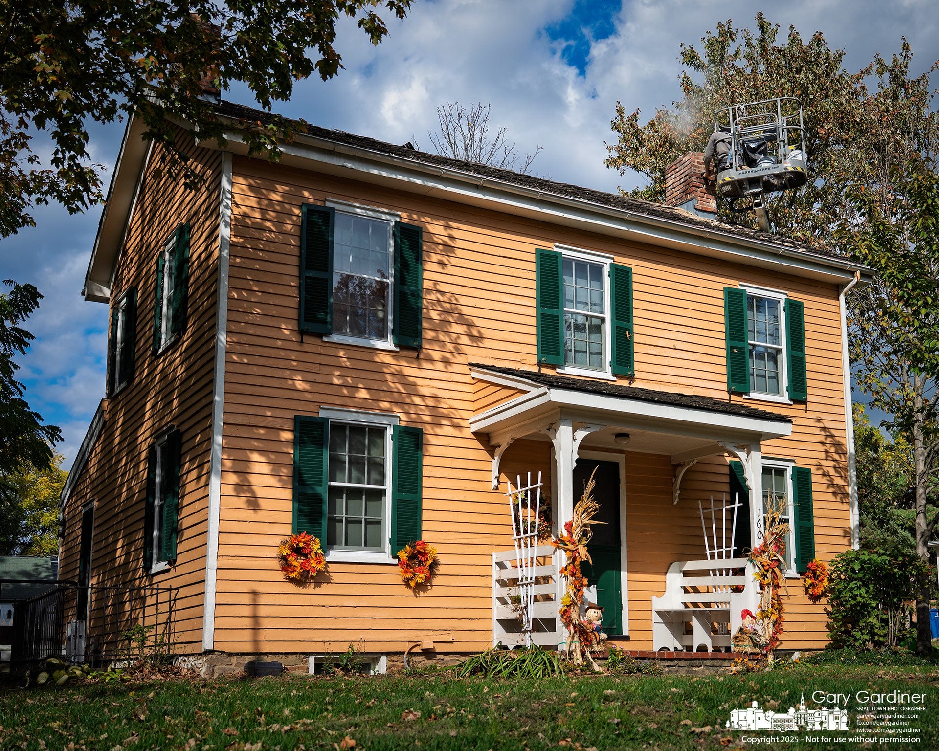 Restoration began Friday on the chimneys at the Hanby House on West Main.