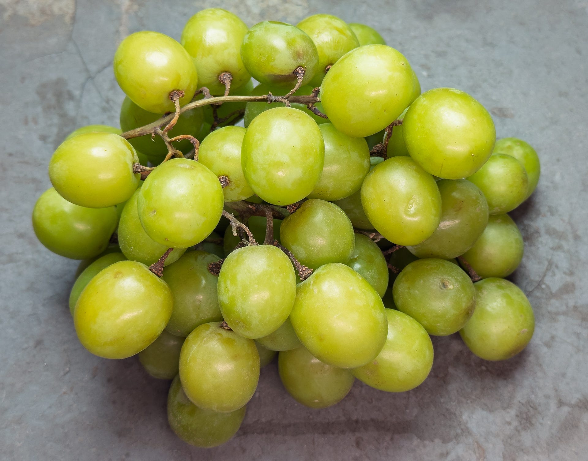 Ten grapes weighed 5.4 ounces, or 153 grams. That is more than a third of a pound in just ten pieces. The average berry measured 32mm by 36mm. These are not the smaller, casual handful grapes often sold under PLU 4022, the catch-all code for standard green seedless varieties.