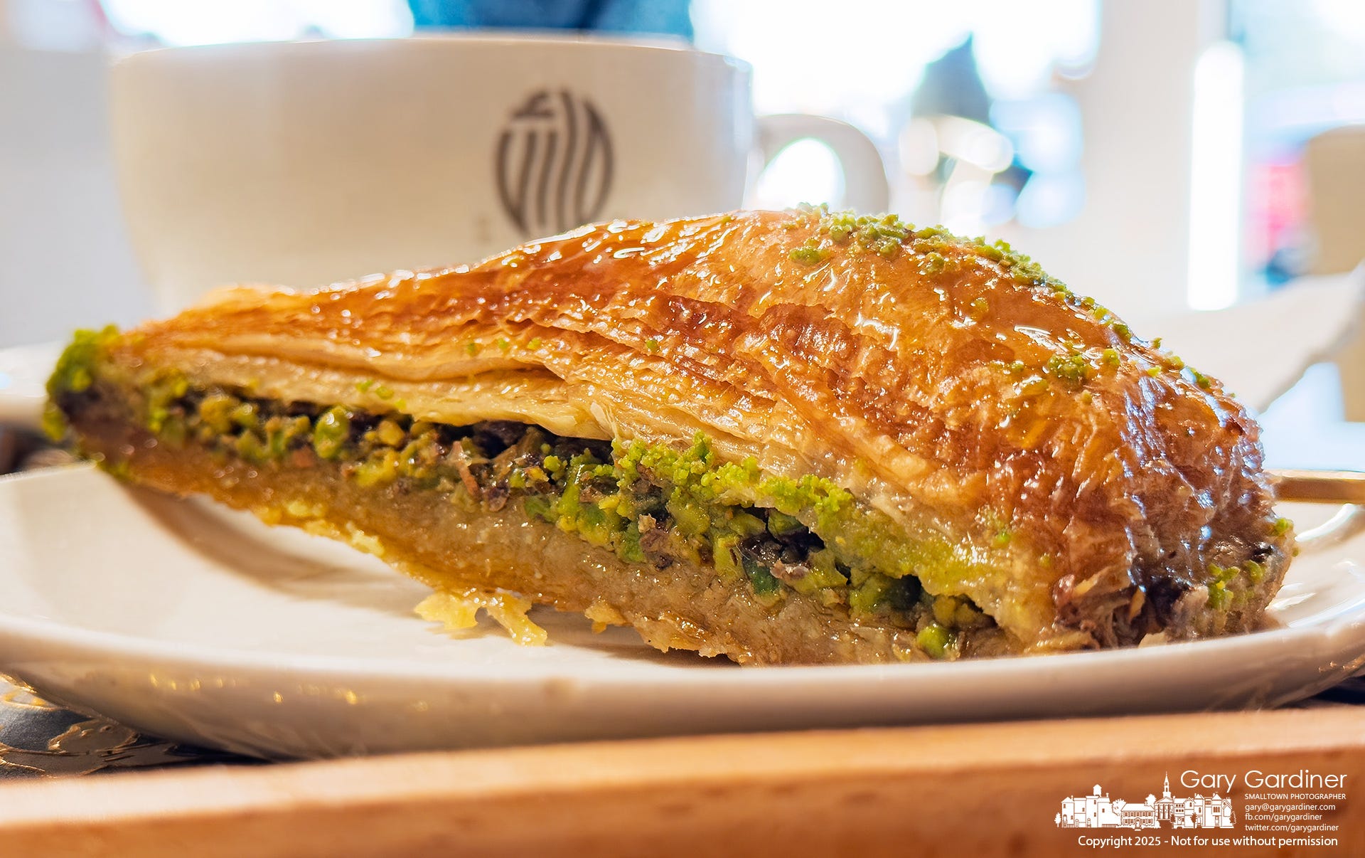 My baklava sat on the table, its shine catching the light. The pistachios looked fresh. The layers cracked gently before the syrup softened everything. Sweet without turning heavy. It felt like something made with care. My Americano fit the moment, steady and bright.