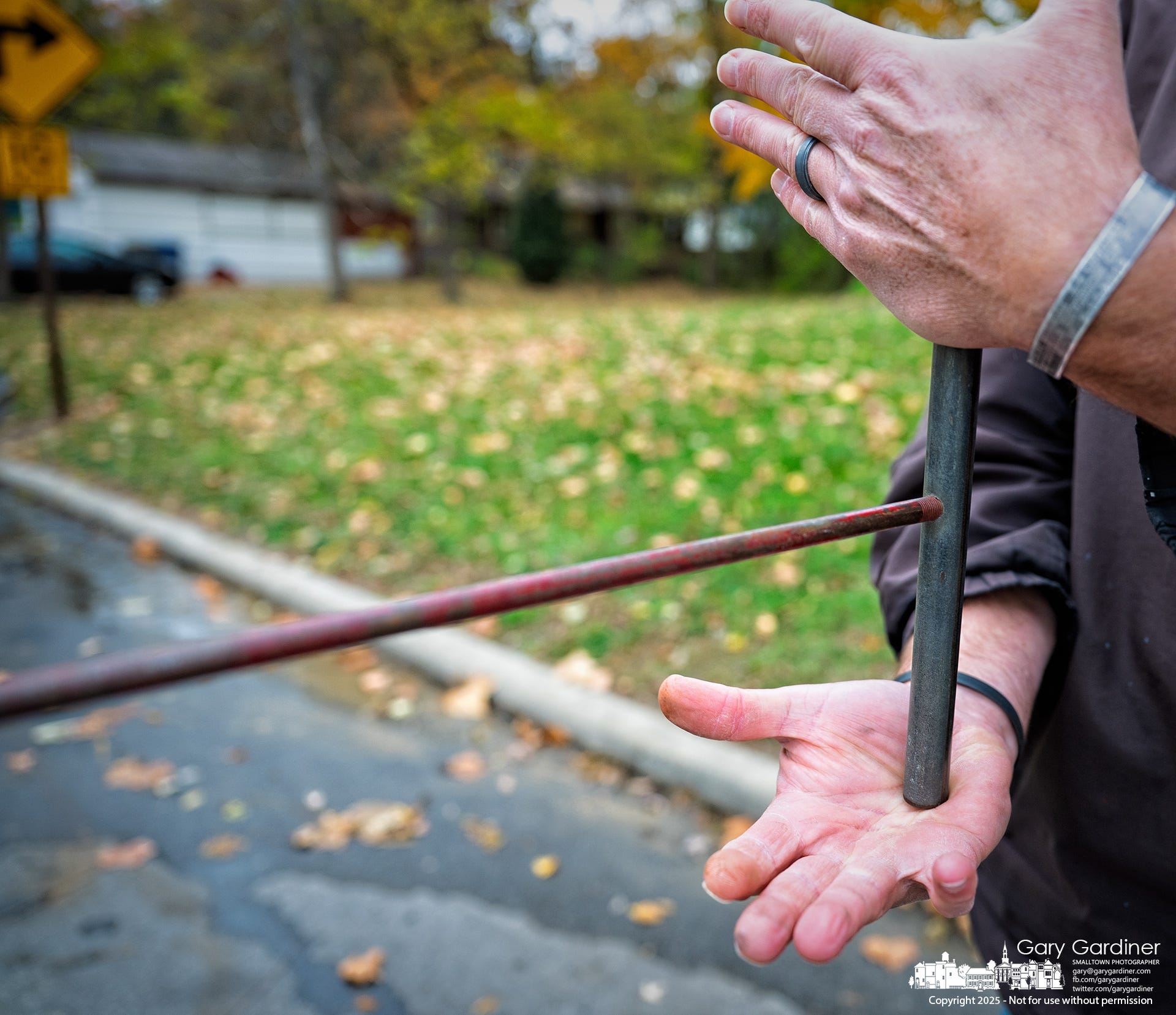 At one point during the repair, a crew member used an unconventional technique to help verify the location of the break. Holding a long steel soil probe horizontally between his palms, he walked the edge of the dig site and watched the rod slowly rotate in his hands. While the tool is normally used to probe the ground for obstructions, in this case it was being used as a dowsing rod.
