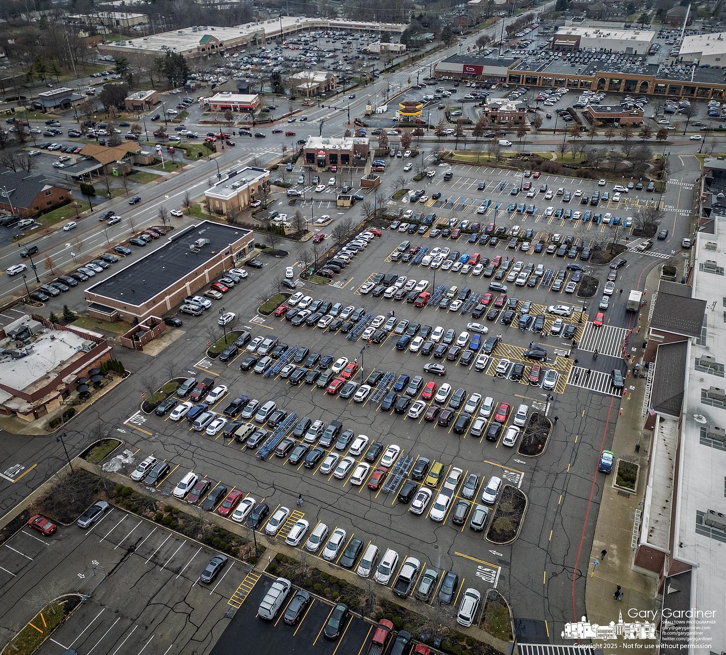 Parking lots at Walmart and the nearby Kroger were already full by midday Tuesday, with drivers circling for spaces and a steady flow of shoppers coming and going. The adjacent strip shopping center also saw consistent activity, suggesting many consumers are focusing on convenience, grocery runs, gift cards, and quick add-on purchases.