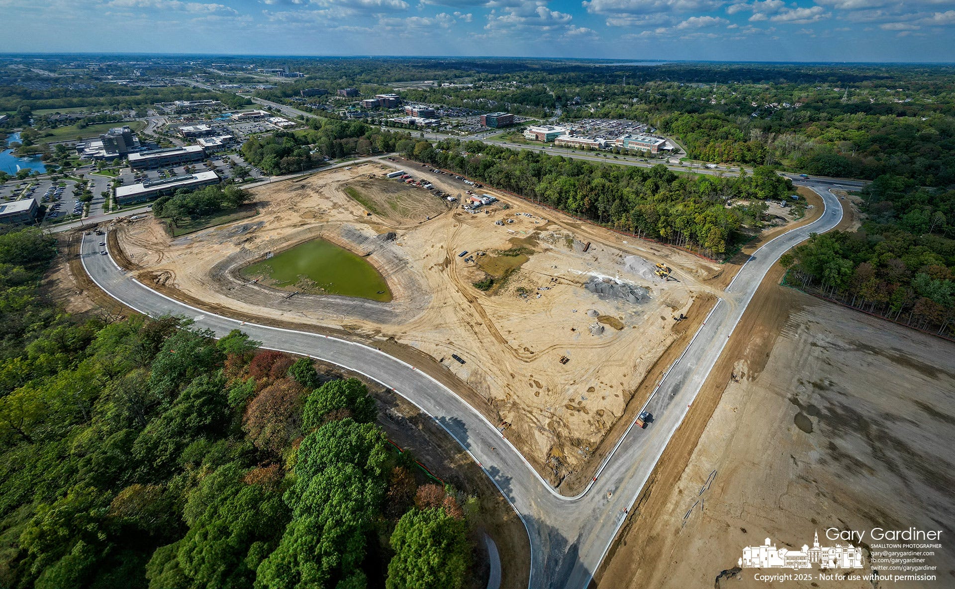If the weather cooperates and the forecast for clear skies is accurate, the northern section of the roadway through East Africa is expected to be paved with asphalt this week. It will not yet be open to traffic, as the rest of the 88-acre site is an active construction zone.