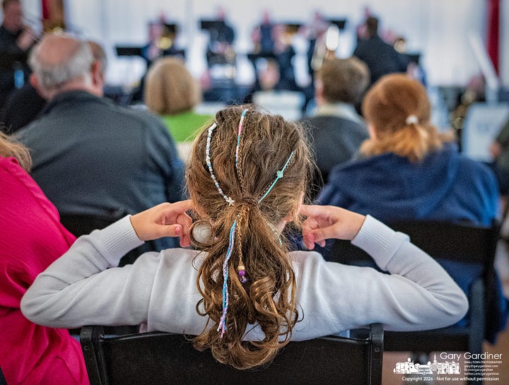 While one young fan took issue with the exuberance of the strong brass, she listened carefully as Dawn Eller performed with the group.