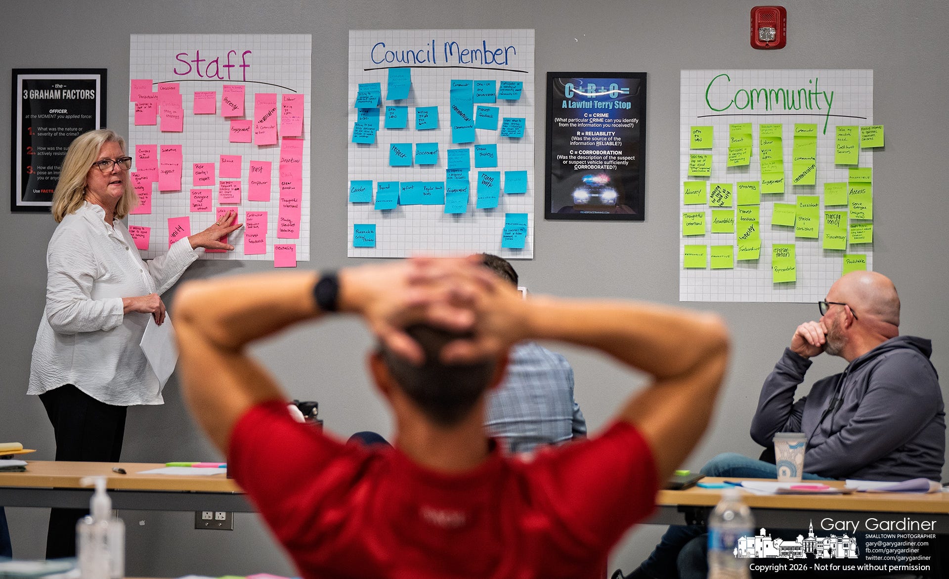 The retreat began with introspective exercises to help council members identify strengths and weaknesses in their relationships with city staff, fellow council members, and residents.