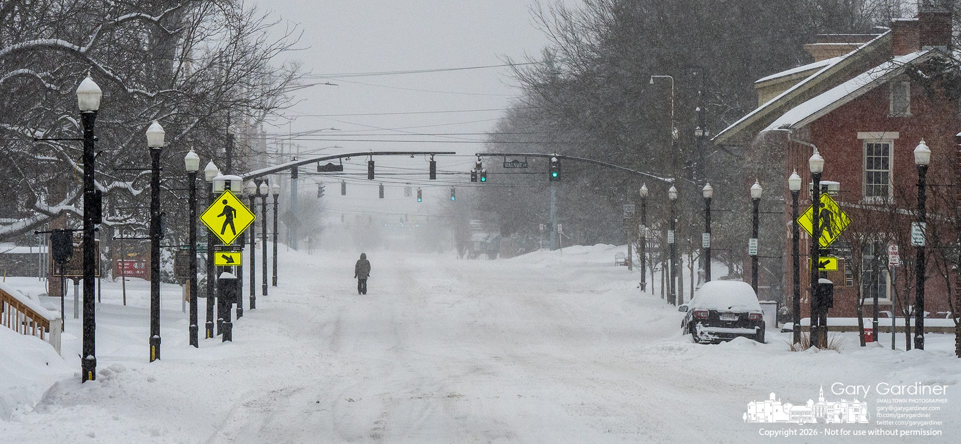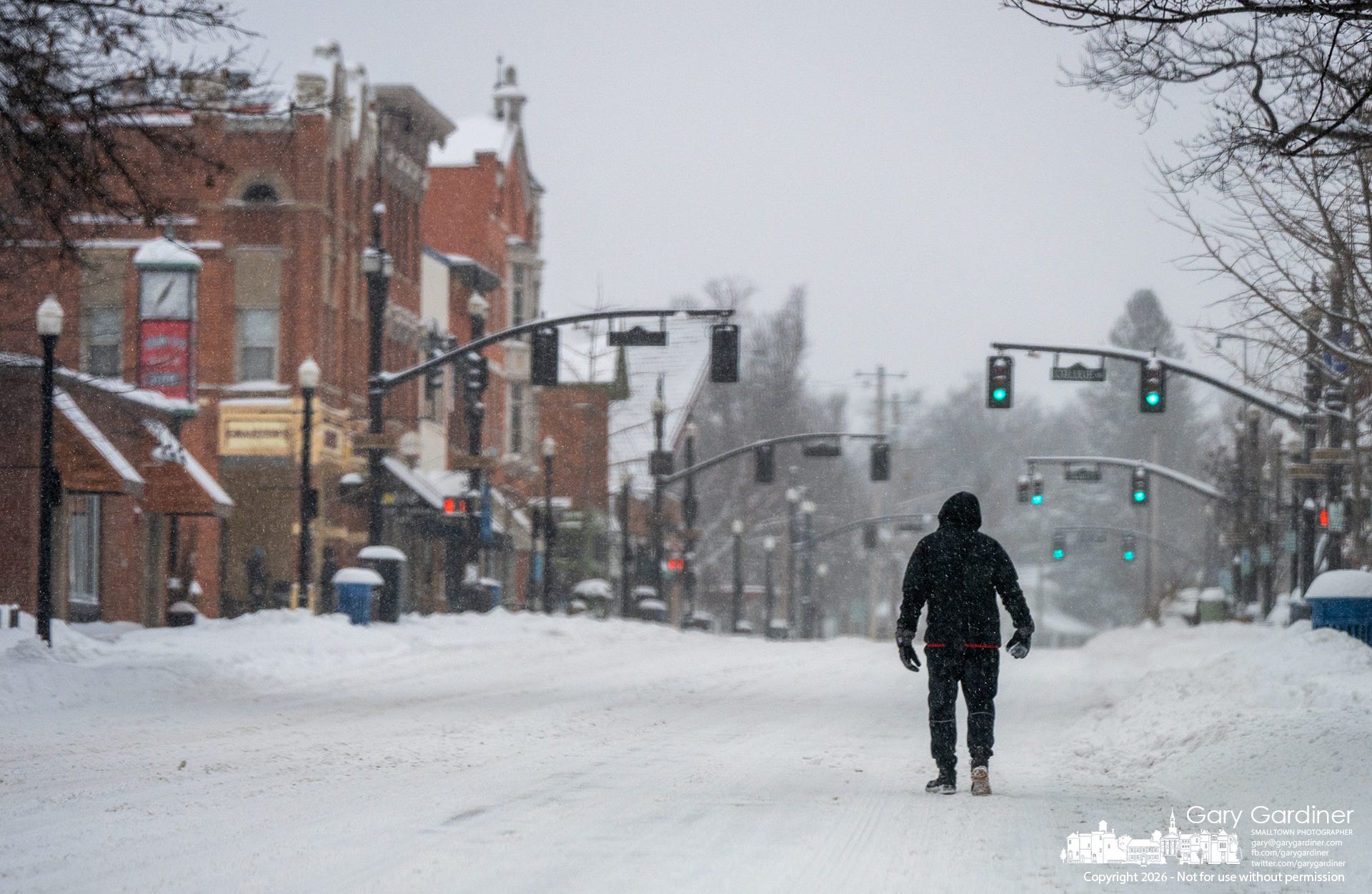 Strate Street through Uptown on Sunday looked like the day of a parade, minus the crowd and the marchers, with only a few people walking in the empty street to avoid the foot of snow that fell on the sidewalks.