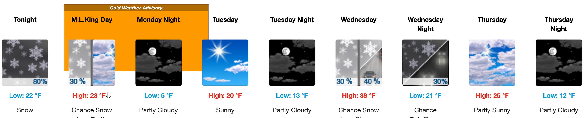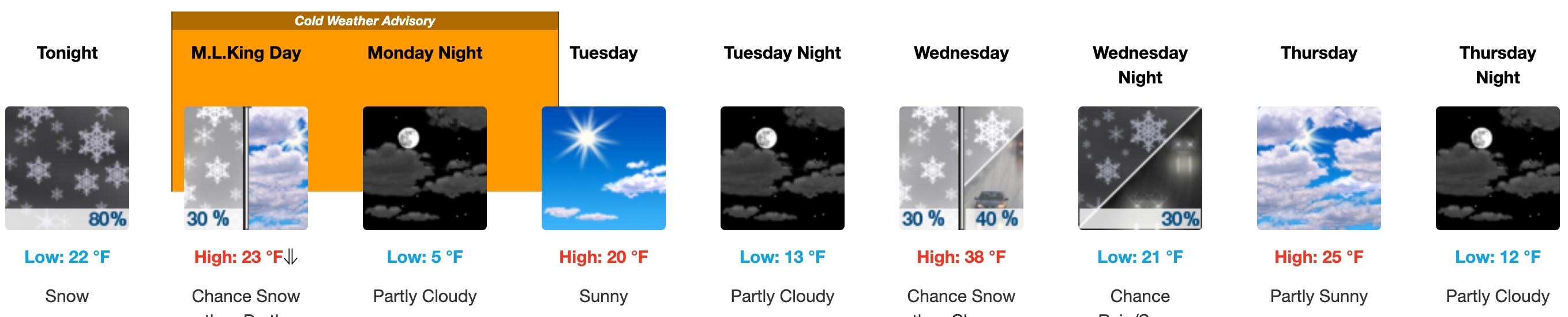 Weather outlook for Westerville. Sunday night, Jan. 18 through Sunday, Jan. 25, 2026