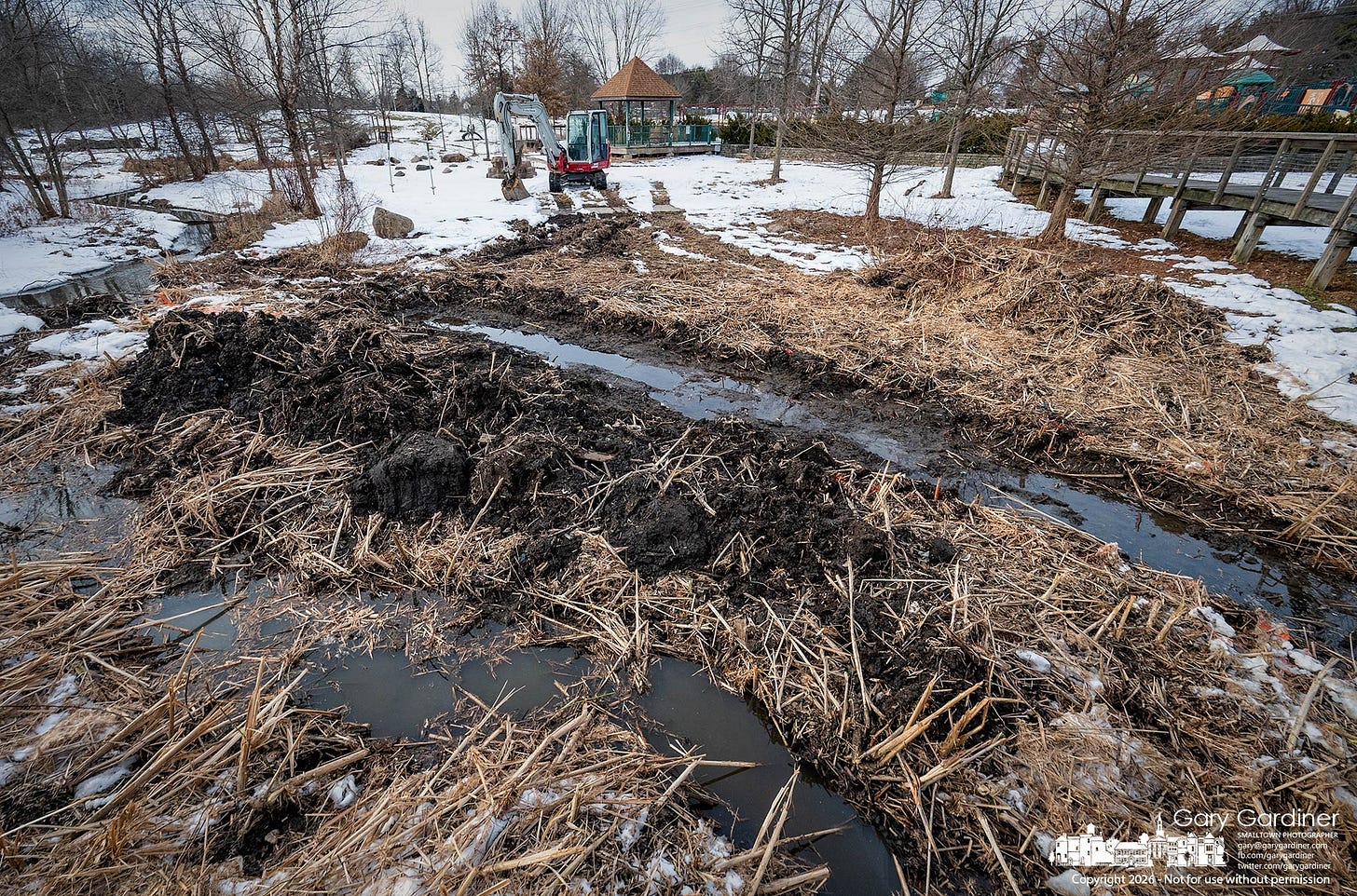 The first week of renovation at the popular Millstone Creek Playground began with the delivery of materials and the beginning of rerouting the creek to better manage water flow through the small park.