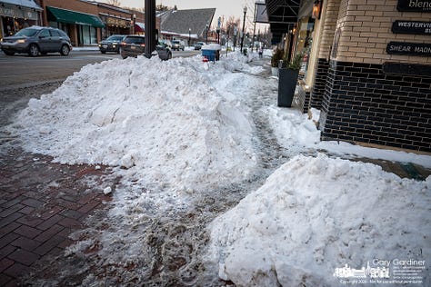 “The City’s Service Department is actively working to manage snow removal throughout Uptown,” said Lynn Aventino, executive director of Uptown Westerville Inc. “They are aware of the needs and are addressing conditions as quickly and safely as possible. This is very much on their radar.”